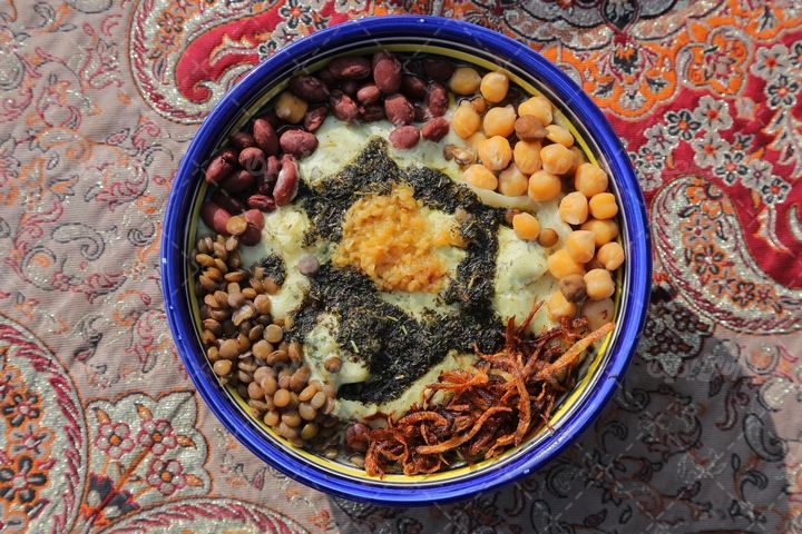 در این تصویر از آش رشته تزئین شده استفاده شده است.