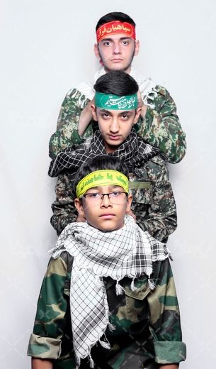 در این تصویر از مرد با لباس نظامی و سربند استفاده شده است.