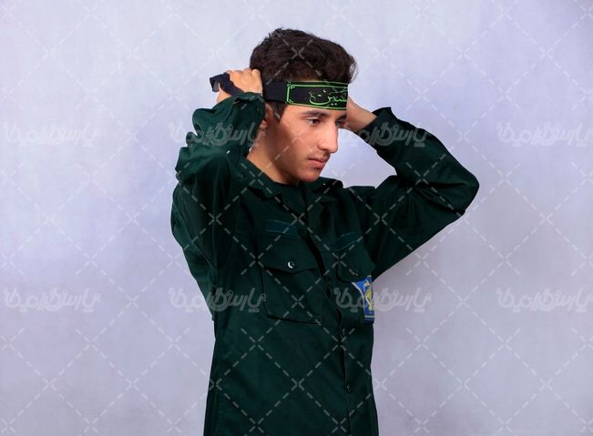 تصویر با کیفیت بستن سربند مرد بسیجی