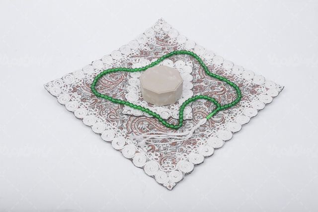 در تصویر بالا از تسبیح و مهر ماه رمضان استفاده شده است.