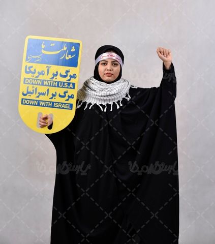 در این تصویر از خانم ایرانی در راهپیمایی استفاده شده است.