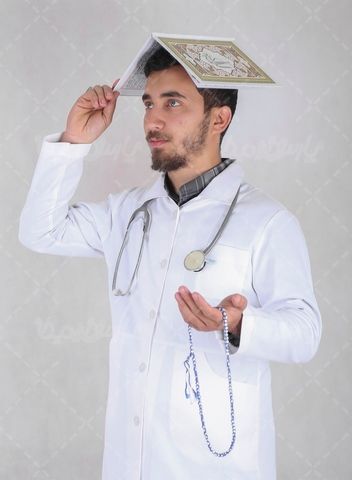 در این تصویر از دکتر در حال دعا کردن استفاده شده است.