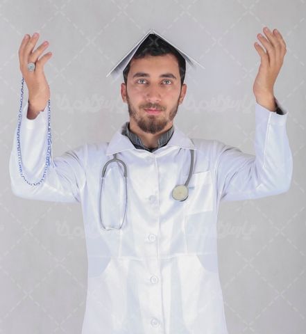 در این تصویر از دکتر در حال دعا کردن استفاده شده است.