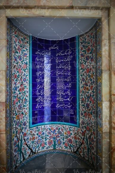 در تصویر بالا کاشی کاری با طرح شعر نوشته بر روی دیوار آرامگاه شوریده شیرازی در شیراز را مشاهده میکنید.