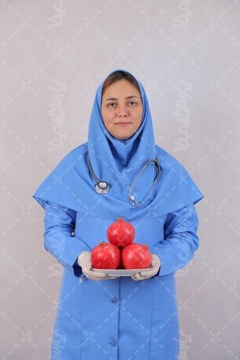 در این تصویر از پزشک ایرانی و انار استفاده شده است.