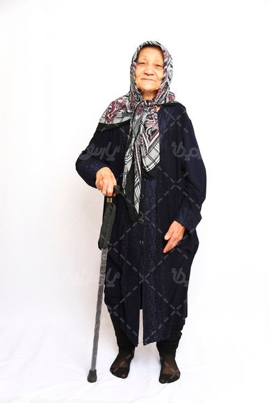 در این تصویر از خانم مسن همراه عصا استفاده شده است.