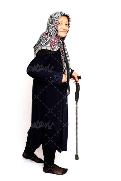 در این تصویر از خانم مسن همراه عصا استفاده شده است.