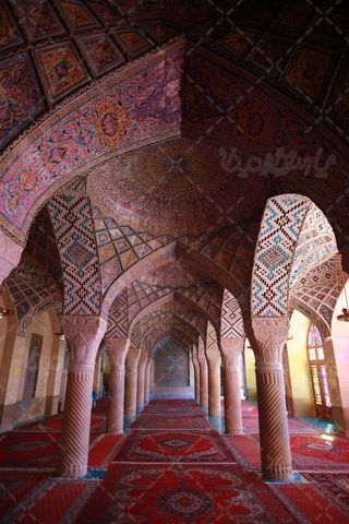 در تصویر بالا ستون های مسجد بسیار زیبا نصیرالملک شیراز را مشاهده میکنید.