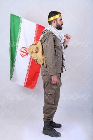 تصویر با کیفیت سرباز ایرانی با پرچم