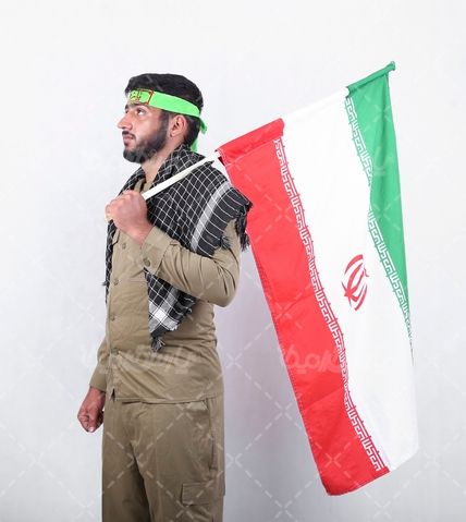 تصویر با کیفیت سرباز ایرانی با پرچم
