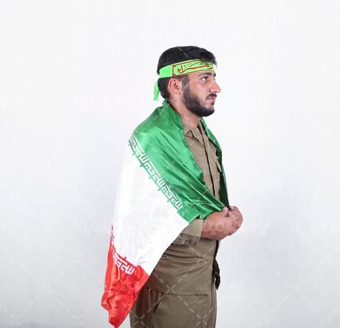 تصویر با کیفیت سرباز ایرانی با پرچم