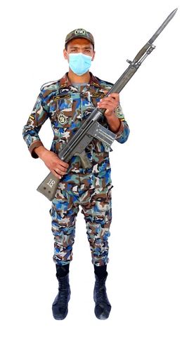 در این تصویر از مرد با لباس نظامی استفاده شده است.