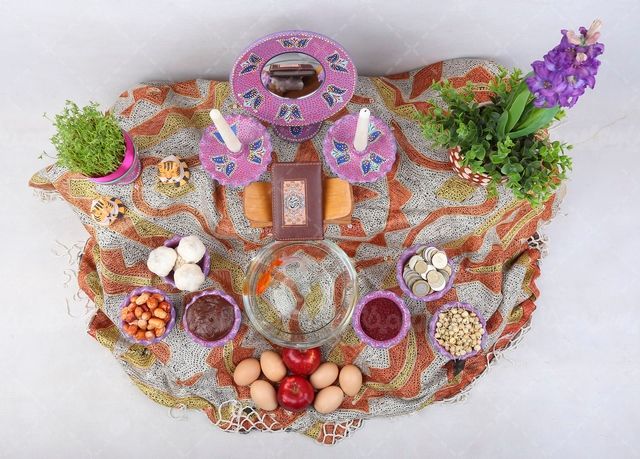 در این تصویر از مدل سفره عید نوروز ایرانی استفاده شده است.