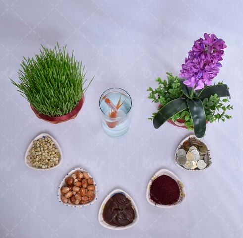 در این تصویر از مدل سفره عید نوروز ایرانی استفاده شده است.