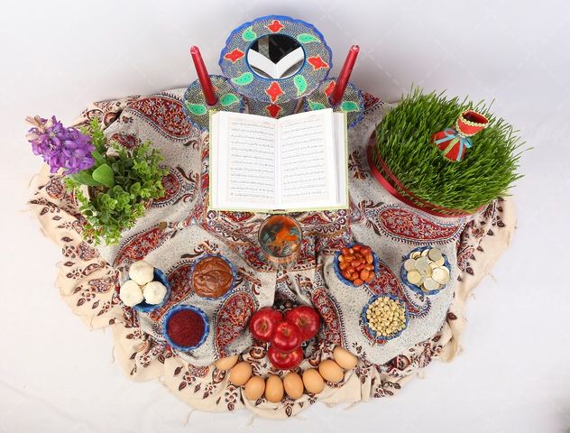در این تصویر از مدل سفره عید نوروز ایرانی استفاده شده است.