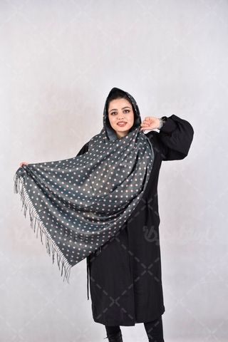 در تصویر بالا شال خال خالی طوسی و صورتی را مشاهده میکنید.