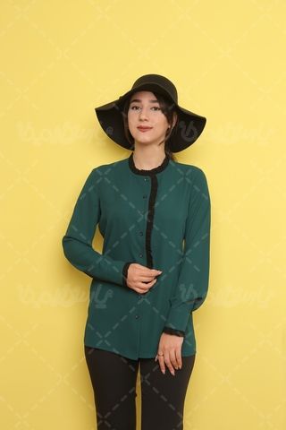 در این تصویر از شومیز سبز زنانه استفاده شده است.