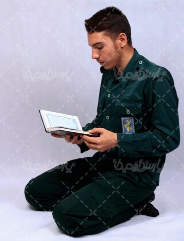 تصویر با کیفیت قرآن خواندن مرد بسیجی