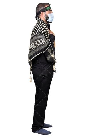 در تصویر بالا از مرد با لباس مشکی و چفیه استفاده شده است.