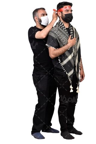 در تصویر بالا از مرد با لباس مشکی و سربند استفاده شده است.