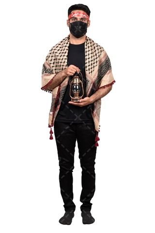 در تصویر بالا از مرد با لباس مشکی و سربند استفاده شده است.