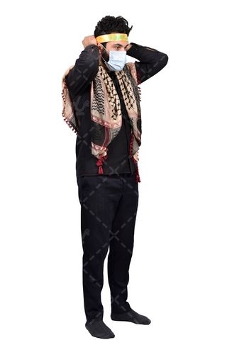 در تصویر بالا از مرد با لباس مشکی و سربند استفاده شده است.
