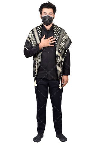 در تصویر بالا از مرد با لباس مشکی و چفیه استفاده شده است.