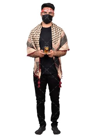 در تصویر بالا از مرد با لباس مشکی و سربند استفاده شده است.