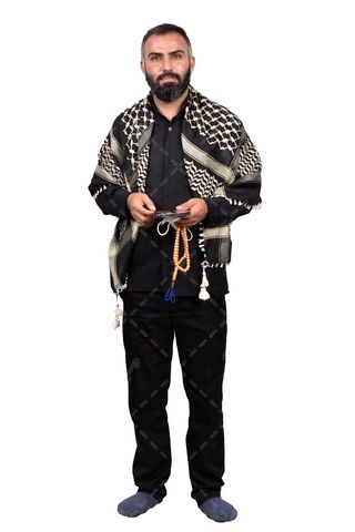 در تصویر بالا از مرد با لباس مشکی و چفیه استفاده شده است.
