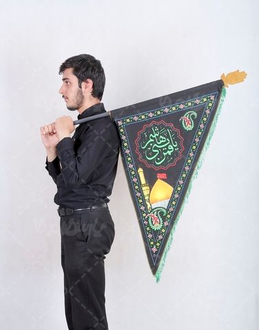 در تصویر بالا از مرد با لباس مشکی و پرچم استفاده شده است.