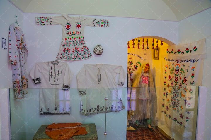 در تصویر بالا از موزه لباس خانه پردلی ، در شهر بیرجند ، استان خراسان جنوبی استفاده شده است.