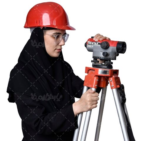 در این تصویر از خانم مهندس با دستگاه نقشه بردار استفاده شده است.