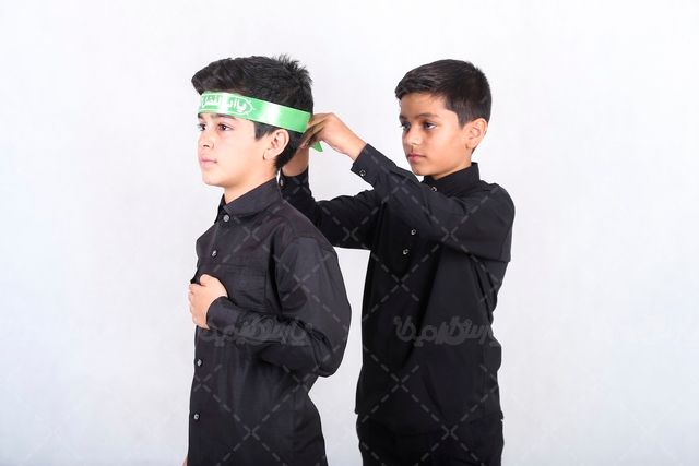 در تصویر بالا از پسر با لباس مشکی و چفیه استفاده شده است.