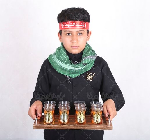 در تصویر بالا از پسر با لباس مشکی با چفیه استفاده شده است.