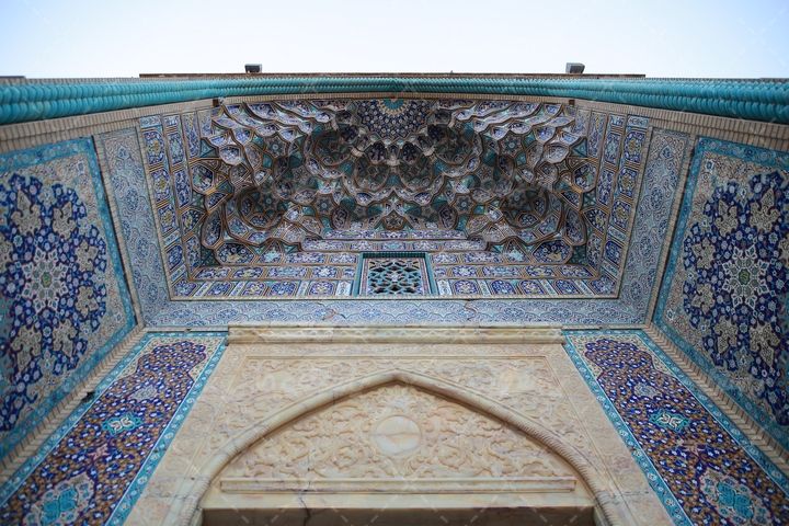 تصویر با کیفیت کاشی کاری دیوار حرم شاهچراغ