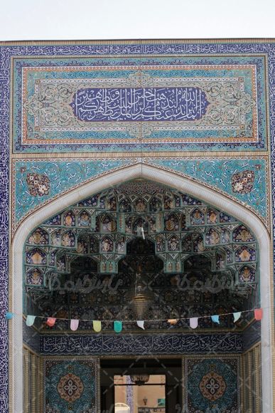 تصویر با کیفیت کاشی کاری دیوار حرم شاهچراغ