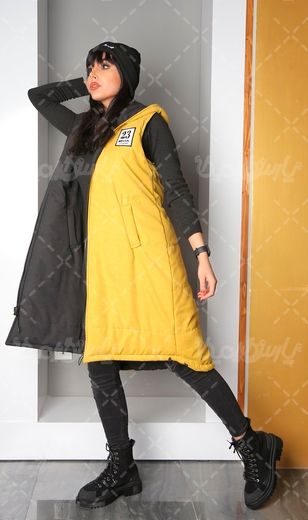 در تصویر بالا کاپشن خردلی زنانه بسیار زیبا را مشاهده میکنید.