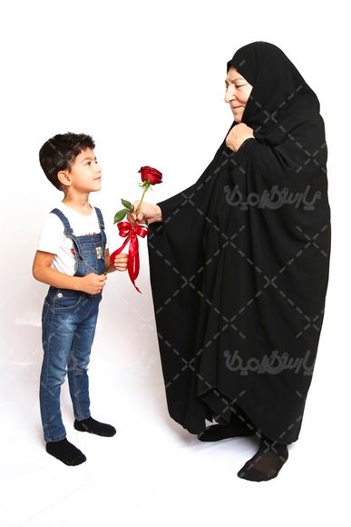 در این تصویر از خانم مسن همراه پسر بچه استفاده شده است.