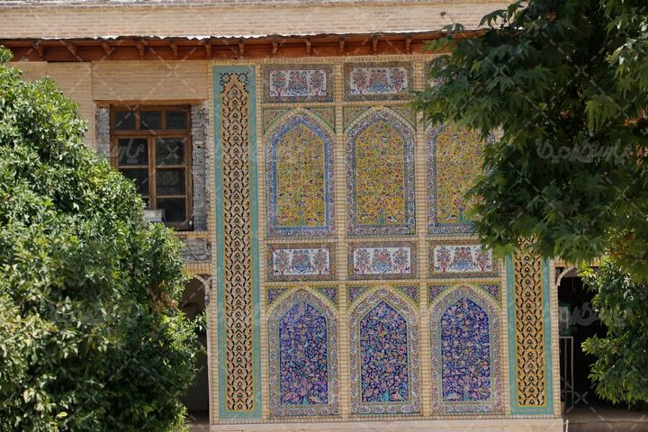 در تصویر بالا محراب خانه محتشم که با کاشی های زیبا تزیین شده را مشاهده میکنید.