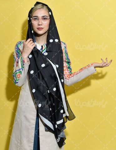 در تصویر بالا شال خال خالی سفید و مشکی را مشاهده میکنید.