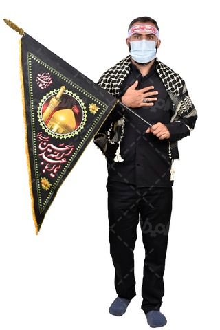 در تصویر بالا از مرد با لباس مشکی و چفیه استفاده شده است.