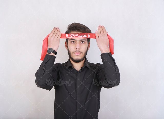 در تصویر بالا از مرد با لباس مشکی و سربند استفاده شده است.