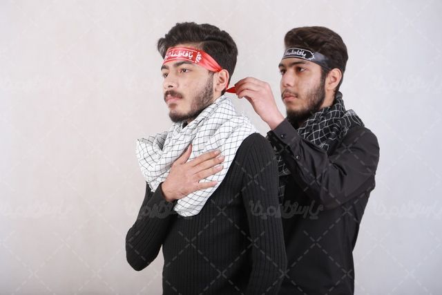 در تصویر بالا از مرد با لباس مشکی و سربند استفاده شده است.