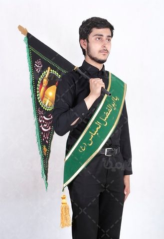 در تصویر بالا از مرد با لباس مشکی و پرچم استفاده شده است.