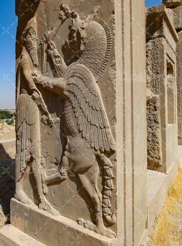 يكی از نقشبرجستههای بسيار زيبای تختجمشيد كه به بخوبی حفظ شدهاند، صحنهی نمادين نبرد شير و شهریار است.