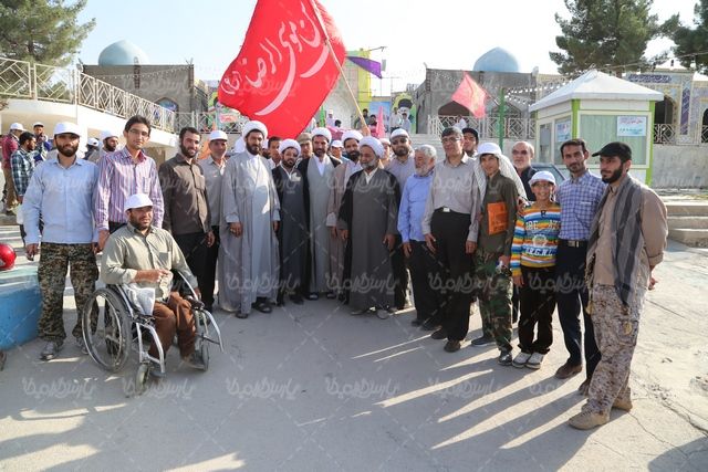 هیئت پیاده مشهد, پیاده روی مشهد ,تصویر با کیفیت هیئت پیاده مشهد, دانلود عکس هیئت پیاده مشهد ,دانلود تصویر هیئت پیاده مشهد, پرچم قرمز, زائر امام رضا(ع) ,زائر مشهد