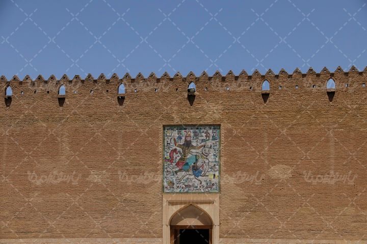 بالاتر از دروازه ورودی ارگ کریمخان ، کاشی کاری قابل توجهی از تصویر نبرد رستم علیه دیو سپید مشاهده میشود که توانسته چشمان زیادی را به خود جذب کند.
