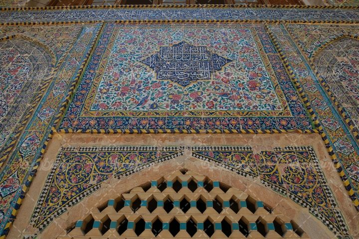 تصویر با کیفیت کاشی کاری مدرسه خان شیراز