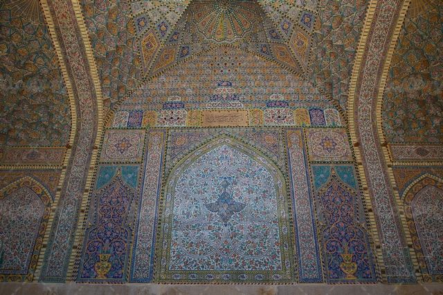در تصویر بالا کاشی کاری مسجد مشیرالملک شیراز را مشاهده میکنید.