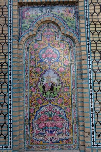 در این تصویر از کاشی کاری نارنجستان قوام در فارس استفاده شده است.